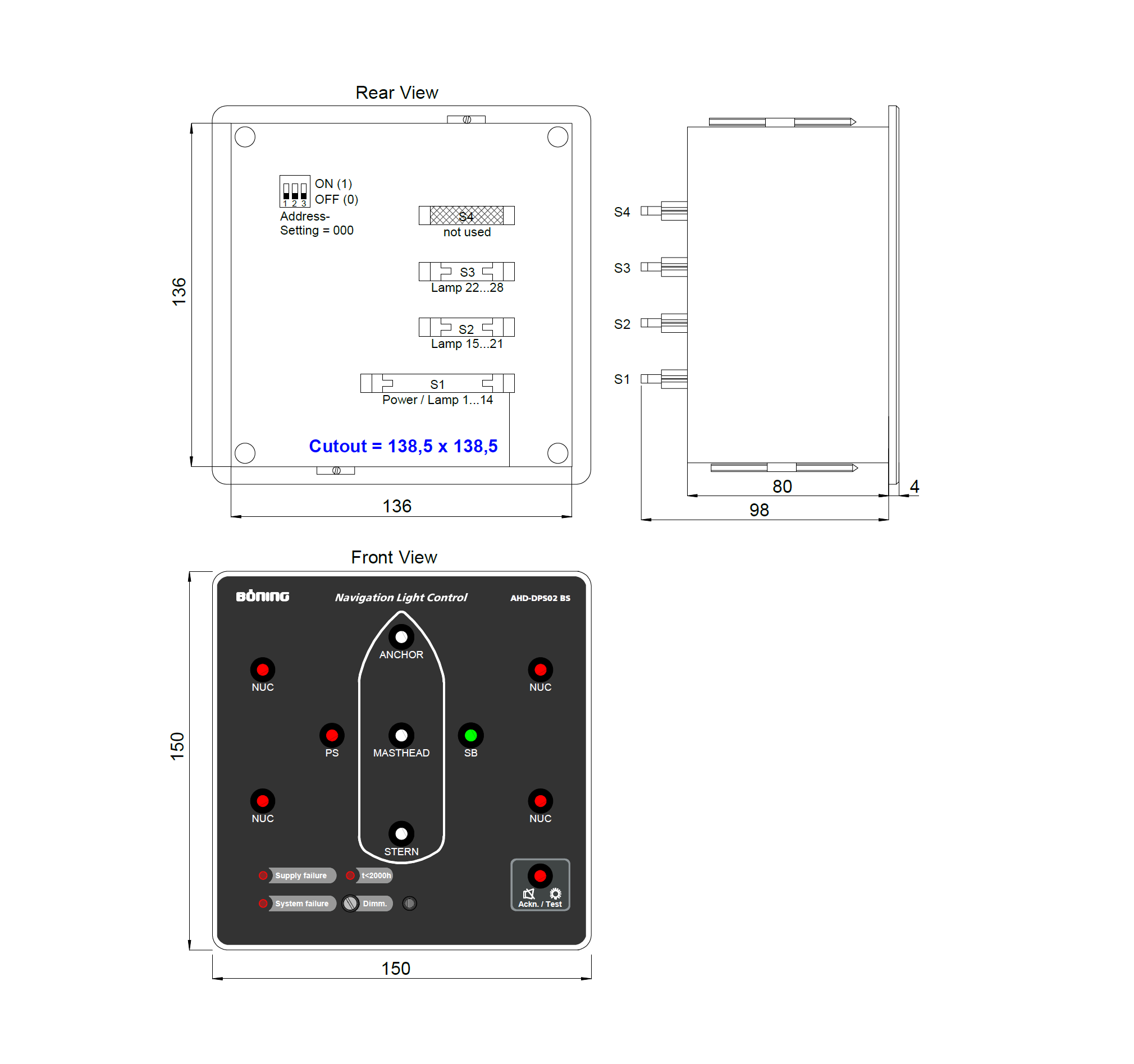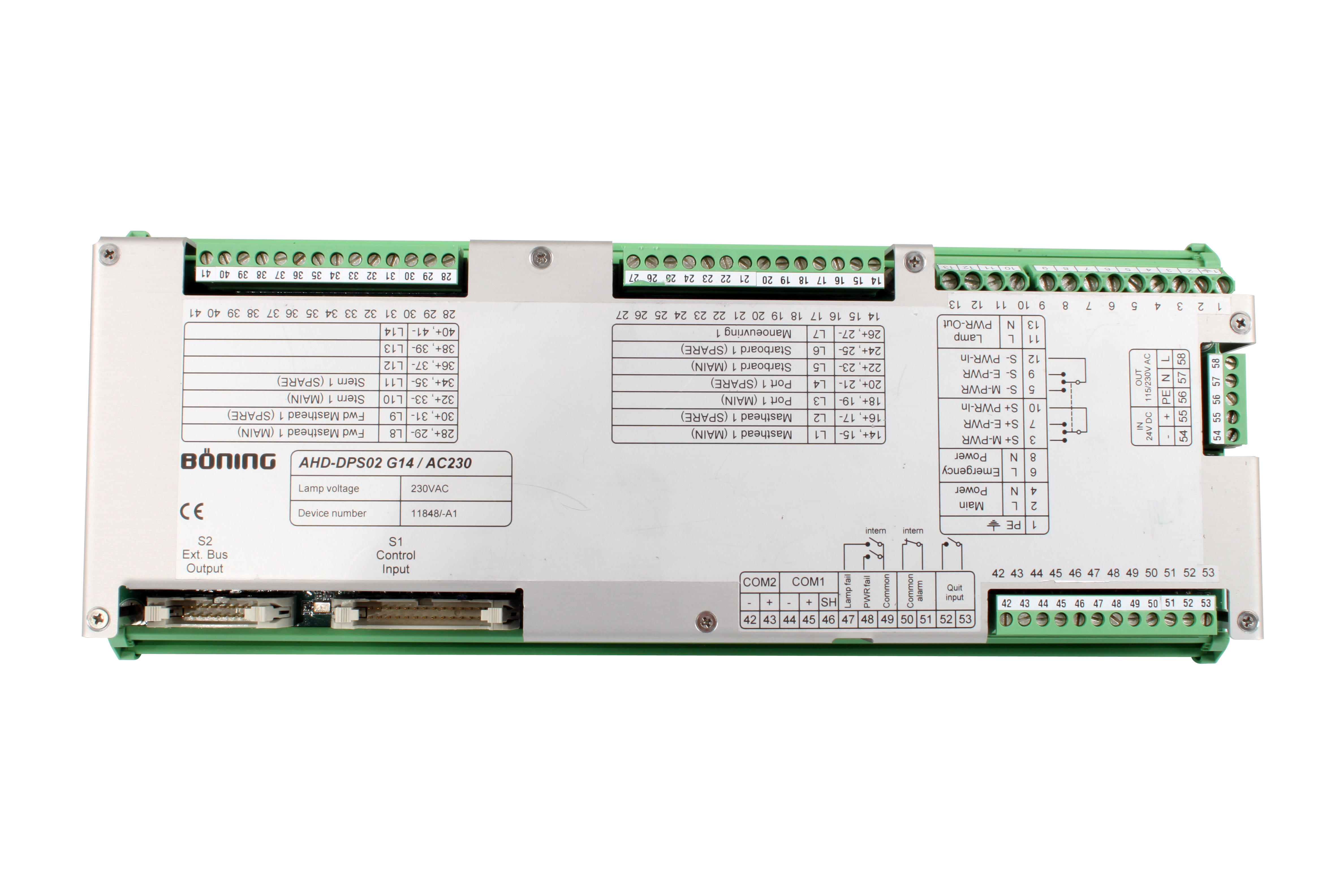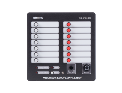 Das modular konzipierte AHD-DPS02 System ermöglicht die Steuerung und Überwachung von bis zu 42 Positions- und Signallaternen an Bord von Schiffen. Das System kann an kundenspezifische Anforderungen angepasst werden. Es besteht aus einem Basismodul, bis zu vier Erweiterungsmodule und einem individuell gestaltbaren Bedienpanel. Das System ist für alle gängigen Schiffsspannungen sowie für den Einsatz mit konventionellen oder LED-Lampen verfügbar. Die Steuerung der Lampen erfolgt über ein Bedienpanel, das pro Lampenkreis mit einer Bedientaste und einer LED-Statusanzeige ausgestattet ist. Bedienpanels sind in standardisierten Größen oder kundenspezifischen Varianten erhältlich. Zusätzlich besteht die Möglichkeit, das System über einen Touchscreen oder Panel-PC zu steuern. Bei einem Elektronikausfall lassen sich die Lampen direkt ansteuern, und ein Sammelalarmkontakt informiert über Fehlerzustände im übergeordneten Alarmsystem. Über die CAN-Bus- oder Modbus-Schnittstellen kann das System an weitere Systeme zur Steuerung und Visualisierung angebunden werden. Das AHD-DPS02 System ist mit Navigationslaternen vieler führender Hersteller kompatibel. Optional bieten wir kompakte Navigationslaternen passend zum System an.